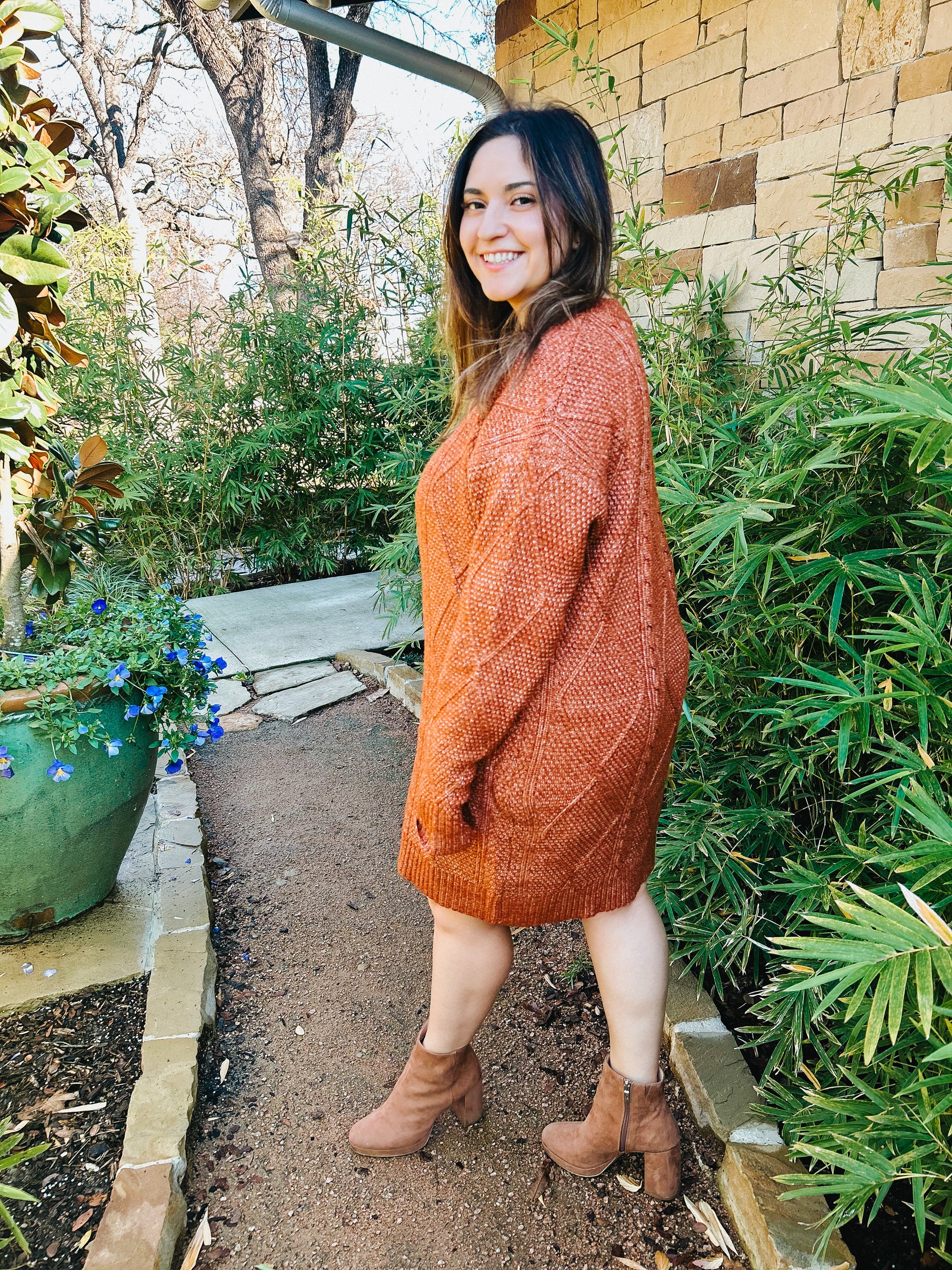 This brown sweater dress is super soft and comfortable, perfect for pairing with your favorite boots. A cozy and stylish addition to your wardrobe!